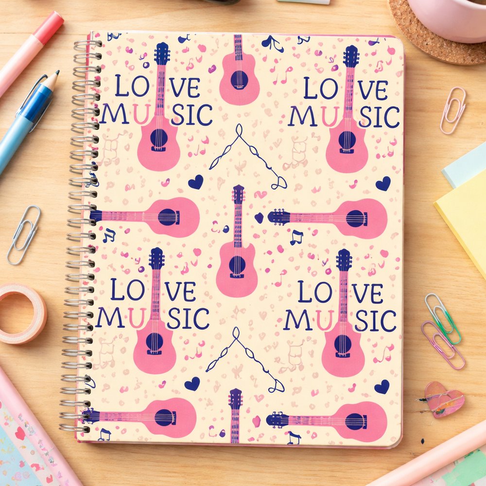 É a escolha perfeita para quem ama cadernos cheios de estilo, personalidade e inspiração! Com um design encantador inspirado no universo musical, ele traz uma capa repleta de violões, símbolos musicais e elementos fofos que transmitem leveza, criatividade e alegria. Ideal para quem gosta de estudar com motivação e beleza, ele oferece qualidade superior, excelente resistência e desempenho mesmo com uso diário. Produzido com materiais de alta durabilidade, protege o conteúdo interno e mantém a estrutura firme por muito mais tempo. As folhas pautadas garantem uma escrita confortável, organizada e agradável, enquanto a encadernação espiral permite abertura total, facilitando o uso em aulas, trabalho ou organização pessoal. Um caderno funcional, moderno e cheio de charme, perfeito para estudantes, amantes de música e quem gosta de unir beleza e praticidade no dia a dia!