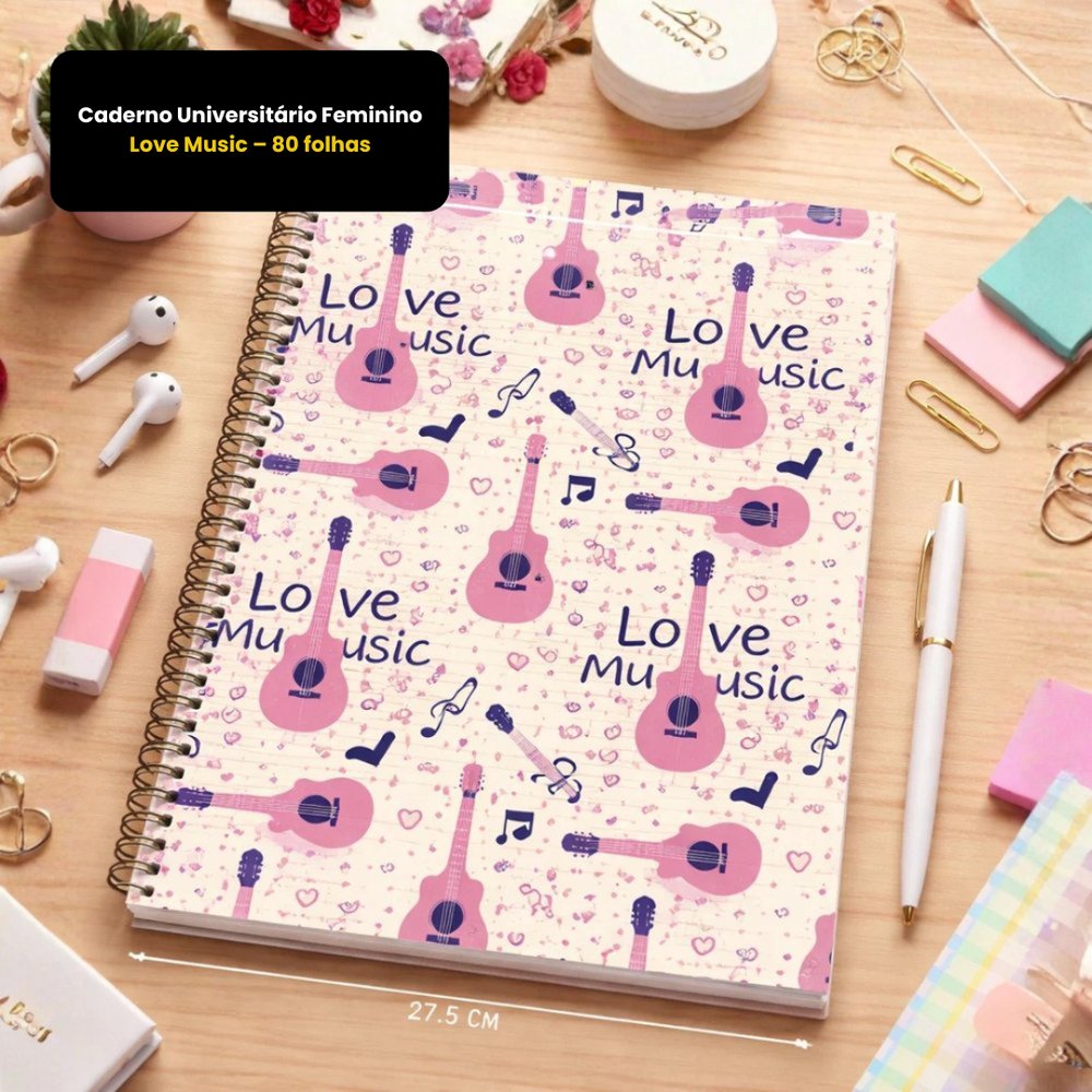 01 Caderno Universitário Feminino Love Music – 80 folhas