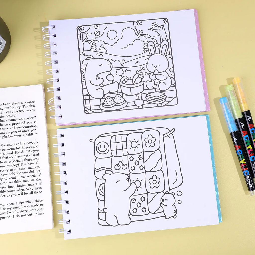bobbie goods capivara, caderninho verde, livro de colorir, kit criativo, 36 canetinhas ponta dupla, papelaria tumblr, presente criativo, canetas para lettering, passatempo relaxante, papelaria fofa, bullet journal, arte e criatividade, material escolar, canetas coloridas, papelaria estética