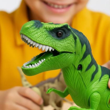 Este dinossauro de brinquedo vai levar os pequenos para uma verdadeira jornada na era dos dinossauros. Com design realista, o brinquedo emite rugidos selvagens e acende os olhos, criando uma experiência de brincadeira empolgante e imersiva. Suas pernas e braços articulados permitem que o dinossauro se mova com agilidade, trazendo ainda mais diversão para a criança. Além disso, acompanha um fósseis para montar seu próprio dinossauro, estimulando a criatividade e o aprendizado. Importante: Não recomendado para crianças menores de 3 anos Não recarregar as pilhas Supervisionar o uso das pilhas Itens inclusos: -01 Dinossauro 30 cm verde -01 Dinossauro 15 cm marrom -01 Fósseis para montar Especificações: Dimensões: Dinossauro verde: 30 cm altura x 20 cm comprimento / Dinossauro Marrom: 15 cm altura x 23 cm comprimento Composição: Plástico PVC Bateria: Funciona com 3 pilhas 1.5V (inclusas) Cor: Verde e marrom Peso:250g REGISTRO INMETRO: 004 148/2025 Contém: 01 Conjunto 2 Dinossauros de Brinquedo Rugido Selvagem