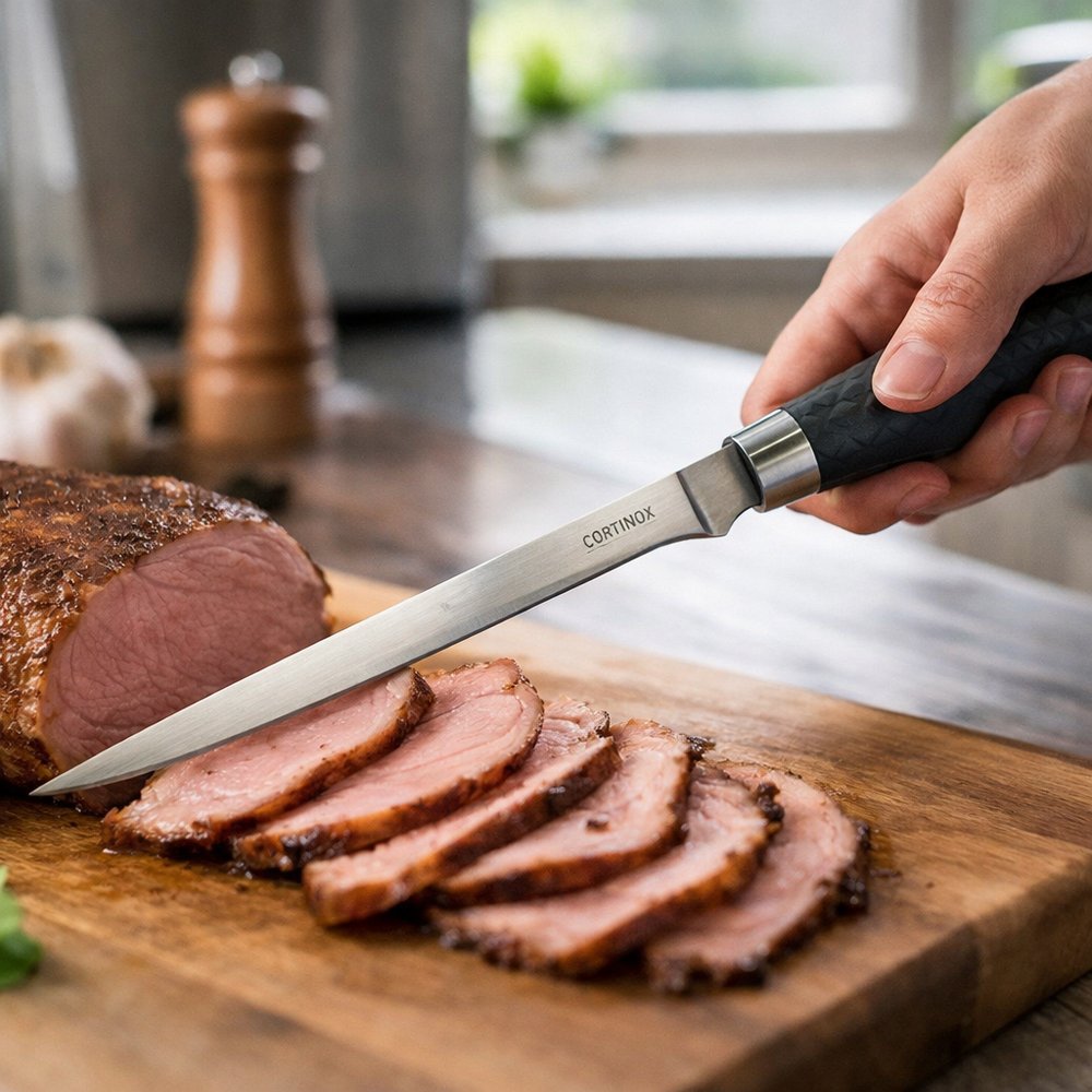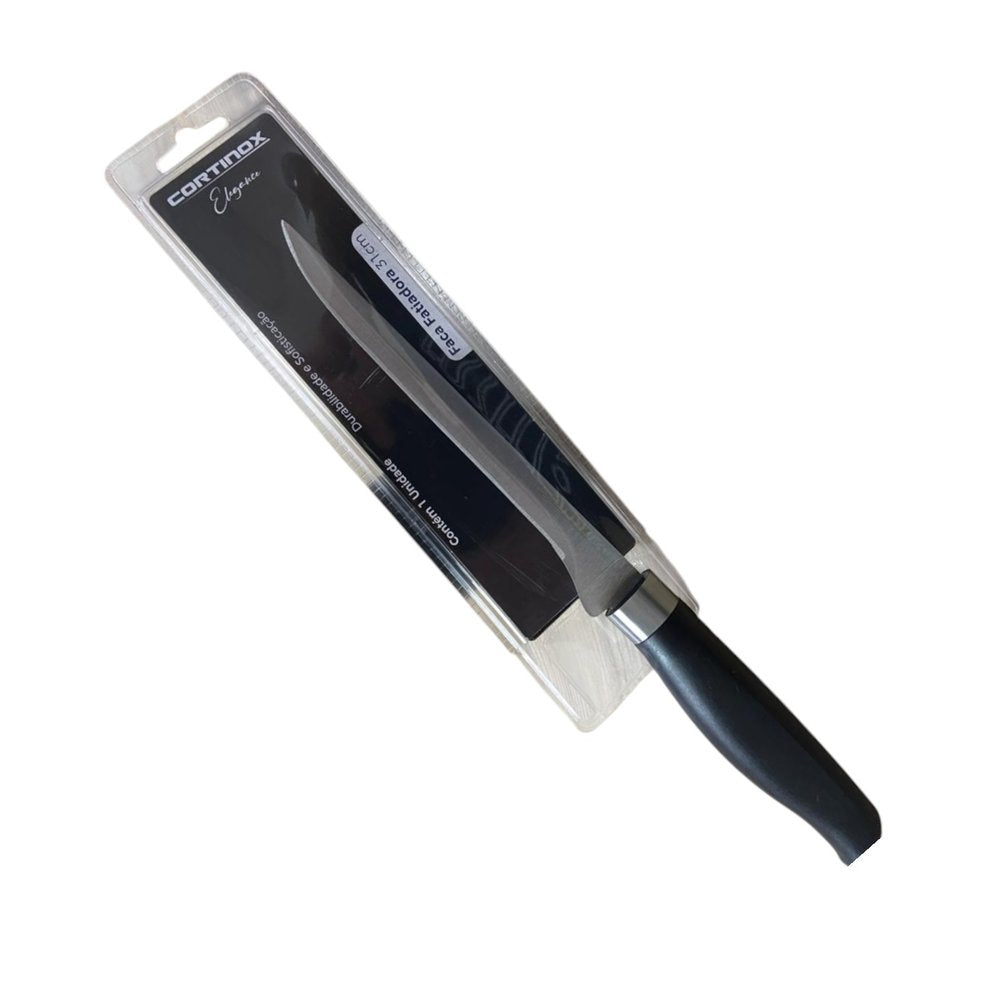 Foi desenvolvida para quem busca precisão, conforto e alto desempenho no preparo dos alimentos. A Faca Fatiadora Cortinox Elegance combina design moderno com funcionalidade profissional, sendo ideal para quem precisa de cortes finos, delicados e uniformes em carnes, peixes, frios e alimentos em geral. A lâmina longa em aço inox oferece excelente poder de corte, alta resistência à oxidação e ótima durabilidade, mantendo o desempenho mesmo com o uso frequente na cozinha. O cabo ergonômico com acabamento sofisticado proporciona firmeza, segurança e uma pegada confortável, reduzindo o esforço das mãos durante o manuseio. Além de prática e eficiente, é fácil de higienizar e manter, garantindo mais qualidade, segurança e elegância no dia a dia culinário. Especificações: Dimensões: 31 cm altura x 2,5 cm largura Composição: Aço inox + plástico Resistência: Alta durabilidade e resistência à oxidação Linha: Elegance Cor do cabo: Preto Peso: 95g Contém: 01 Faca Fatiadora Cortinox Elegance 31 cm