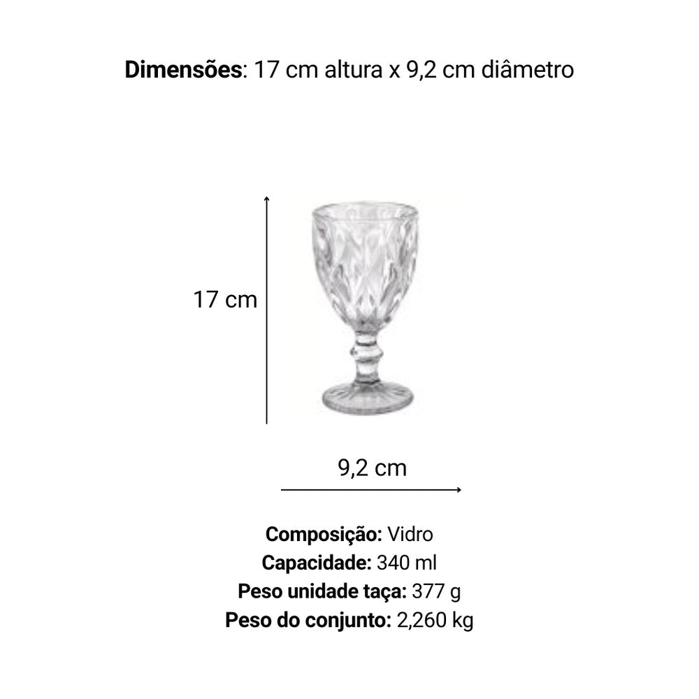 Jogo de Taças de Vidro Diamante 340 ml com 6 peças - Praticasa