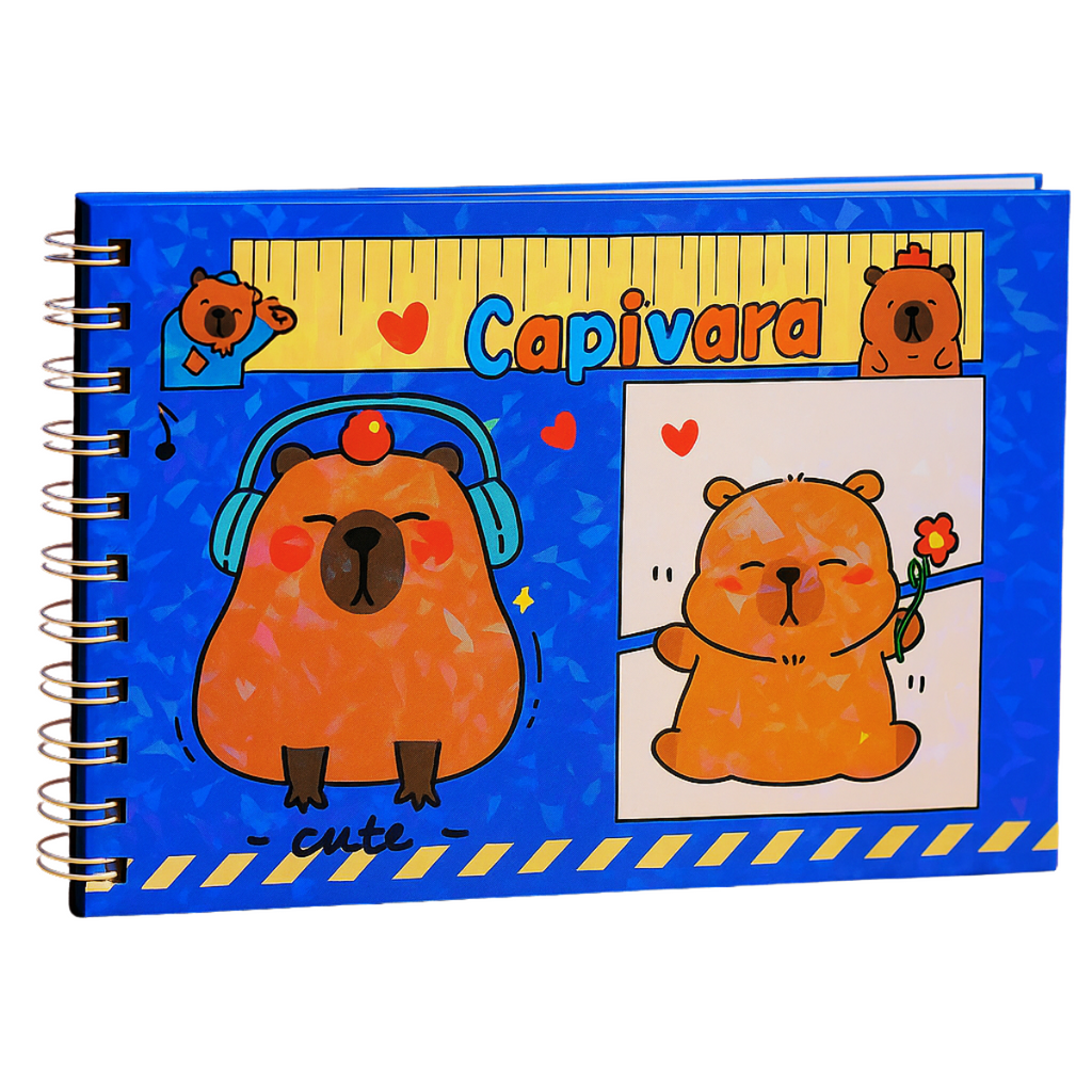 O caderninho traz ilustrações fofas e autorais da capivara mais querida da internet