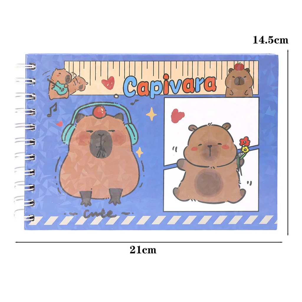 O livro Bobbie Goods capivara para colorir é um caderninho azul cheio de charme e criatividade