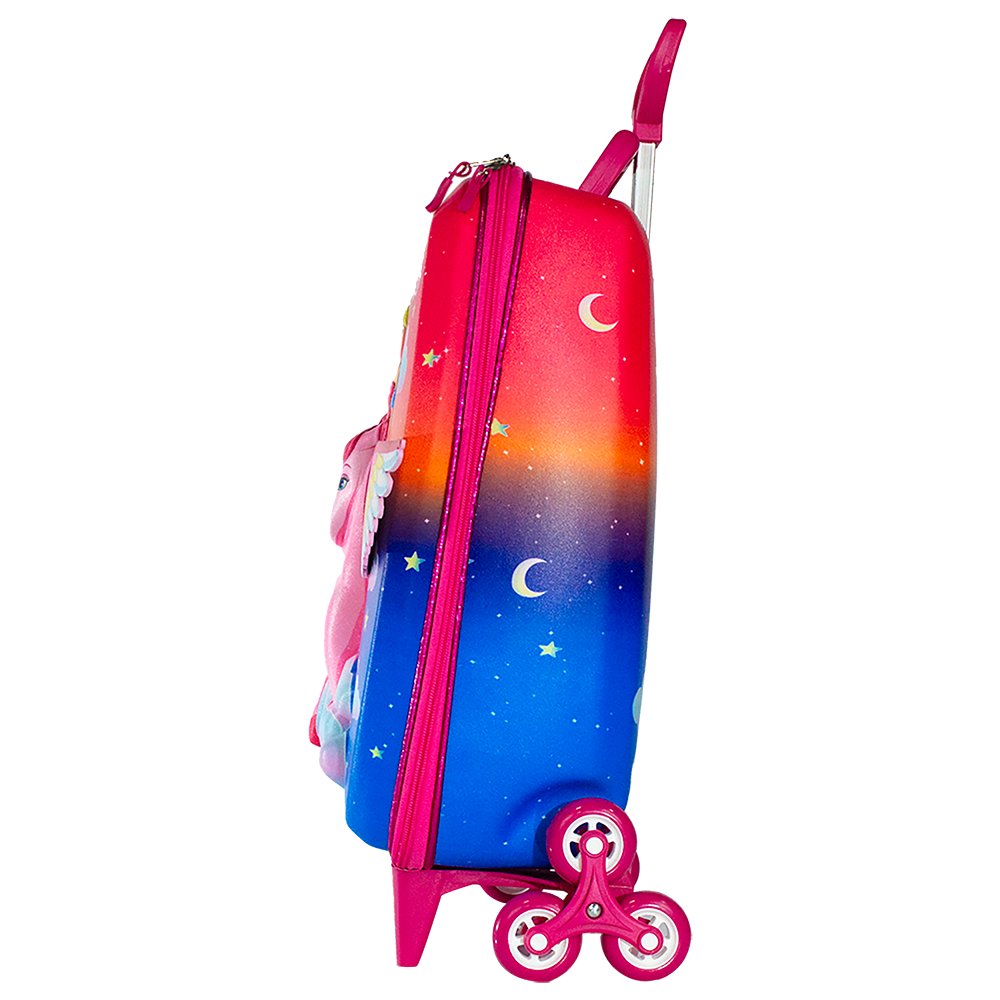 Transforme cada viagem em uma aventura mágica com a Mala Infantil Barbie com Asas 3D! Com um design encantador e cheio de estilo, essa mala apresenta a Barbie montada em um cavalo alado em alto-relevo, com asas 3D que saltam do painel frontal e criam um visual único e lúdico. As cores vibrantes em tons de rosa, azul e roxo, combinadas com elementos como nuvens, estrelas, luas e arco-íris, tornam a peça ainda mais especial. Produzida em material resistente e leve, sua estrutura rígida oferece durabilidade e proteção para os pertences da criança, seja em viagens, passeios ou no dia a dia escolar. O interior espaçoso é ideal para acomodar roupas, brinquedos e livros, enquanto o sistema de rodinhas triplas facilita o transporte, inclusive em escadas. O puxador retrátil anatômico e a alça superior reforçada garantem conforto e praticidade no manuseio. A parte traseira da mala traz uma estampa complementar com mais detalhes encantadores e espaço para identificação. Essa mala é perfeita para crianças apaixonadas por Barbie, magia e aventuras, unindo funcionalidade e beleza em um único produto que desperta a imaginação e transforma qualquer momento em uma experiência mágica. Indicado para crianças de 3 anos Características do Produto: -Sistema de 3 Rodas -Seu interior é dividido em 2 compartimentos Cuidados: -Não submeter a temperaturas a cima de 40ºC por períodos prolongados; -Não usar objetos pontiagudos ou cortantes; -Não usar álcool ou desinfetante podem danificar cor ou o formato. Em caso de Sujidade profunda pode usar detergente neutro. Especificações: Dimensões: 40cm altura x 20cm largura x 30cm profundidade Composição: 80% EVA, 20% Poliéster Capacidade Litros: 20 Litros Capacidade Peso: 5kg Peso: 1,250kg Cor: Multicolorida Contém: 01 Mala Infantil Barbie Pegasus 3D - Multicolorida