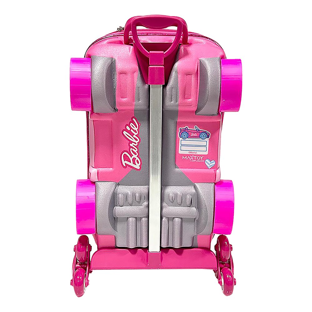 Leve a magia da Barbie para todos os lugares com a Mala de Rodinhas Barbie em formato de Carro Conversível! Perfeita para as pequenas aventureiras que amam estilo, praticidade e diversão, essa mala é muito mais do que um item de viagem: é um verdadeiro acessório de moda e imaginação. Com design exclusivo em 360°, ela é toda inspirada no carro da Barbie, com detalhes impressionantes como bancos internos em relevo, painel, volante, faróis, rodas com textura realista e até um para-brisa retrátil que dá um toque de realidade ao brinquedo. Feita com materiais resistentes e acabamento de alta qualidade, ela garante durabilidade mesmo nas viagens mais agitadas. Equipada com rodinhas triplas giratórias que facilitam o transporte em qualquer tipo de terreno, a mala também possui alça retrátil ergonômica, facilitando o manuseio por crianças e adultos. O zíper duplo garante segurança e praticidade na hora de abrir e fechar. O compartimento interno é espaçoso e ideal para organizar roupas, brinquedos, acessórios e tudo que a criança precisar levar para passeios, escola, casa dos avós ou viagens em família. Além de funcional, é um verdadeiro atrativo visual que chama atenção por onde passa e estimula a criatividade e o senso de organização dos pequenos. A Mala Barbie Carro é indicada para crianças a partir de 3 anos e também pode ser utilizada como item decorativo no quarto, tornando-se parte do universo lúdico da criança. É uma excelente opção de presente para datas especiais como aniversários, Dia das Crianças, Natal ou volta às aulas. Quem disse que praticidade e diversão não podem andar juntas? Com essa mala da Barbie, cada viagem vira uma nova brincadeira cheia de estilo e personalidade Características do Produto: -Sistema de 3 Rodas -Seu interior é dividido em 2 compartimentos Cuidados: -Não submeter a temperaturas a cima de 40ºC por períodos prolongados; -Não usar objetos pontiagudos ou cortantes; -Não usar álcool ou desinfetante podem danificar cor ou o formato. Em caso de Sujidade profunda pode usar detergente neutro. Especificações: Dimensões: 50cm altura x 20cm largura x 26cm profundidade Composição: 80% EVA, 20% Poliéster Capacidade Litros: 20 Litros Capacidade Peso: 5kg Peso: 1,550kg Cor: Rosa Contém: 01 Mala Infantil Barbie Conversível 3D com Rodinhas - Rosa