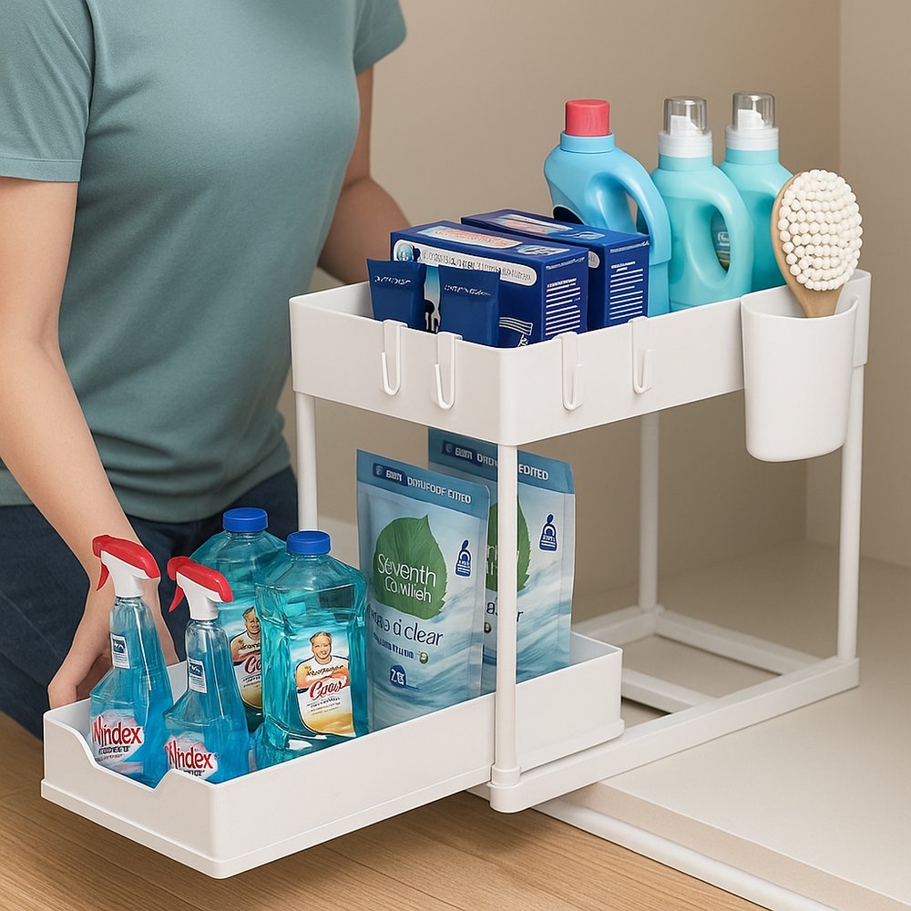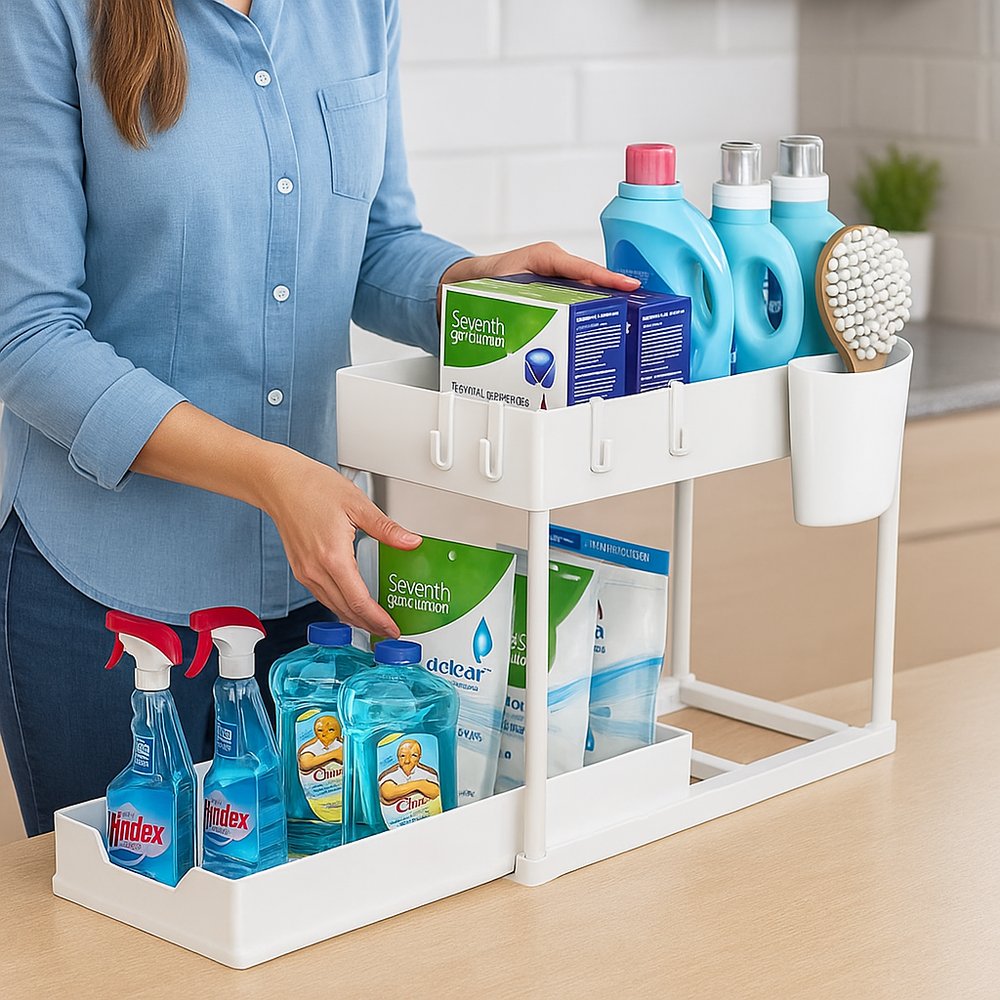 Organizador Multiuso 2 Níveis com Bandeja Corrediça - Branca
