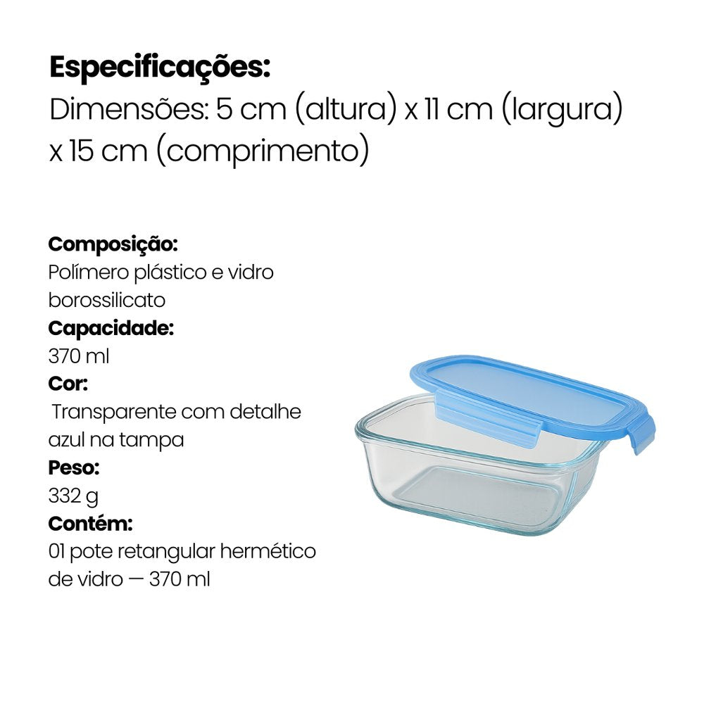 Pote Retangular Hermético Vidro Global Mix 370ml
