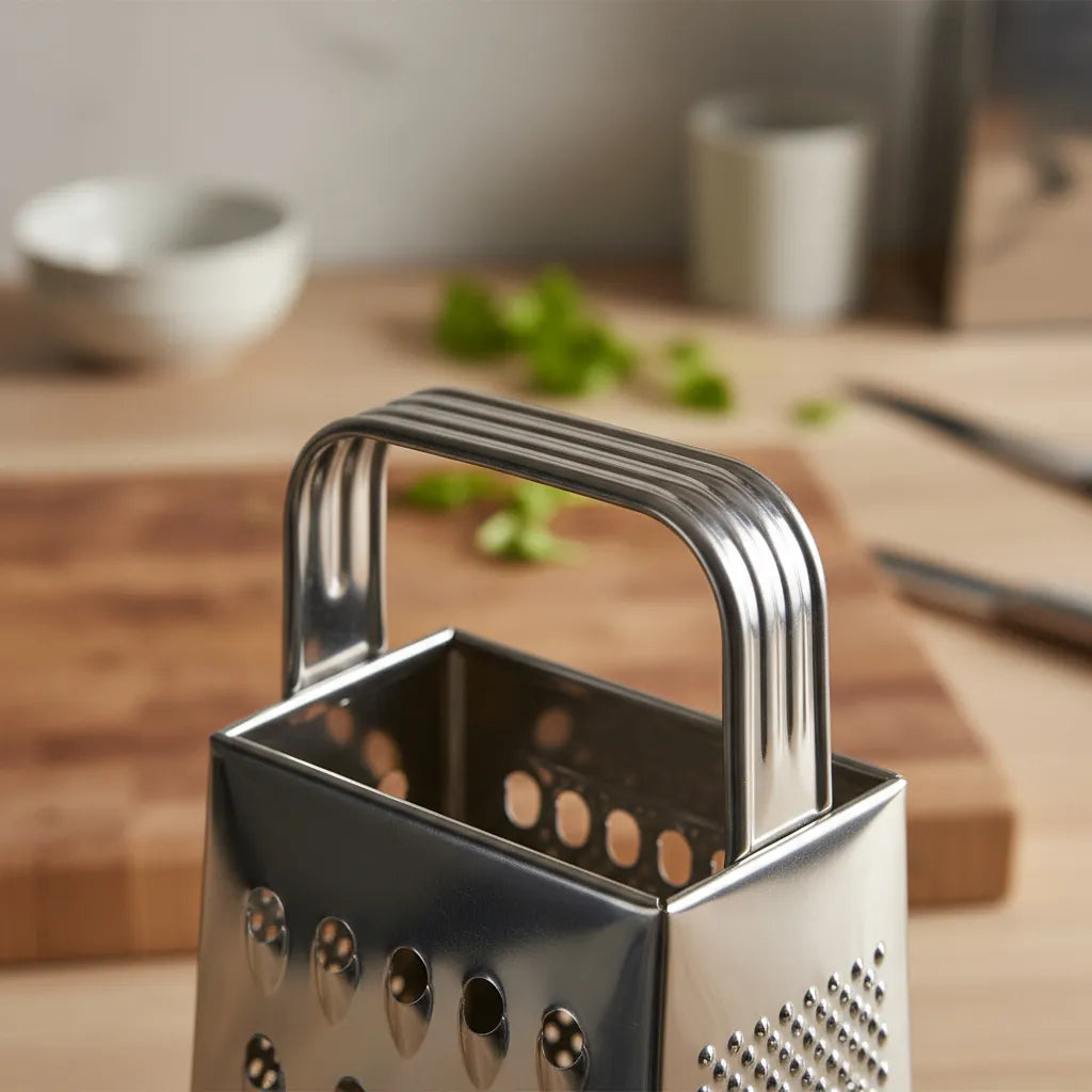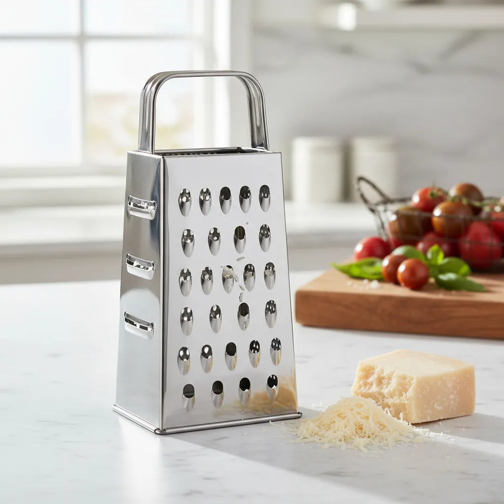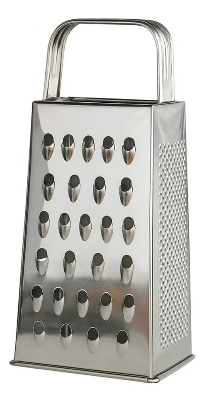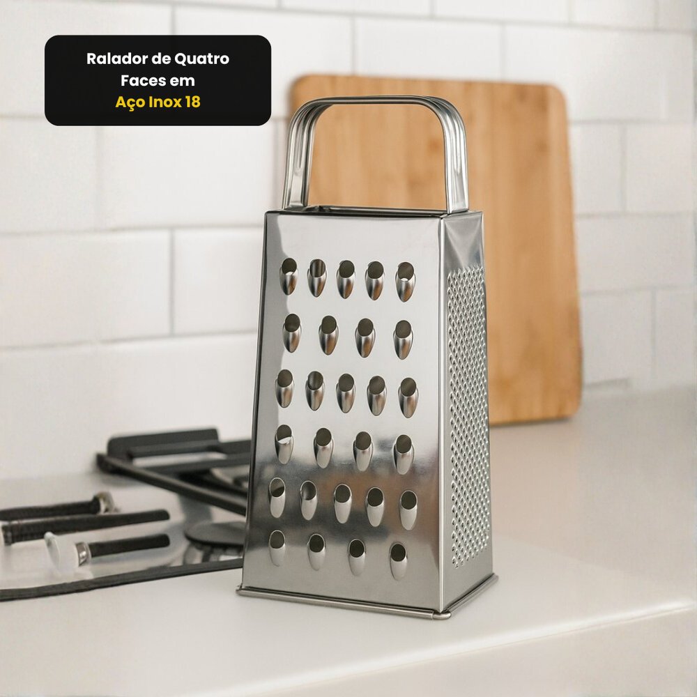 Prático e eficiente, o Ralador de Quatro Faces em Aço Inox 21cm é ideal para quem busca agilidade e versatilidade no preparo dos alimentos. Produzido em aço inox de alta durabilidade, garante resistência ao desgaste e não enferruja, mantendo o brilho e a aparência de novo por muito mais tempo. Possui quatro superfícies com diferentes tipos de corte fino, médio, grosso e fatiador, perfeitas para ralar queijos, legumes, frutas, chocolates e muito mais, atendendo às mais variadas receitas. Seu design funcional com alça ergonômica oferece firmeza e segurança durante o uso, tornando o processo mais confortável e preciso. Fácil de limpar e prático para o dia a dia, é um utensílio indispensável em qualquer cozinha. Especificações: Dimensões: 18cm de altura x 9 cm largura x 6 cm comprimento Material: Aço Inoxidável Cor: Prata Peso: 97 g Contém: 01 Ralador de Quatro Faces em Aço Inox 18 cm